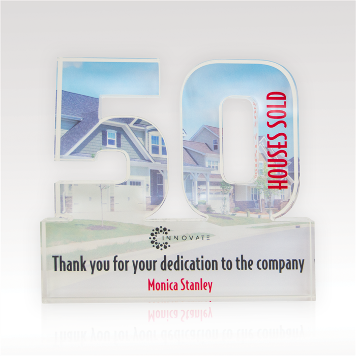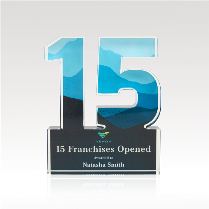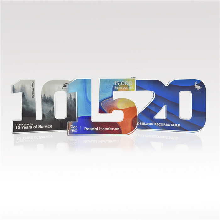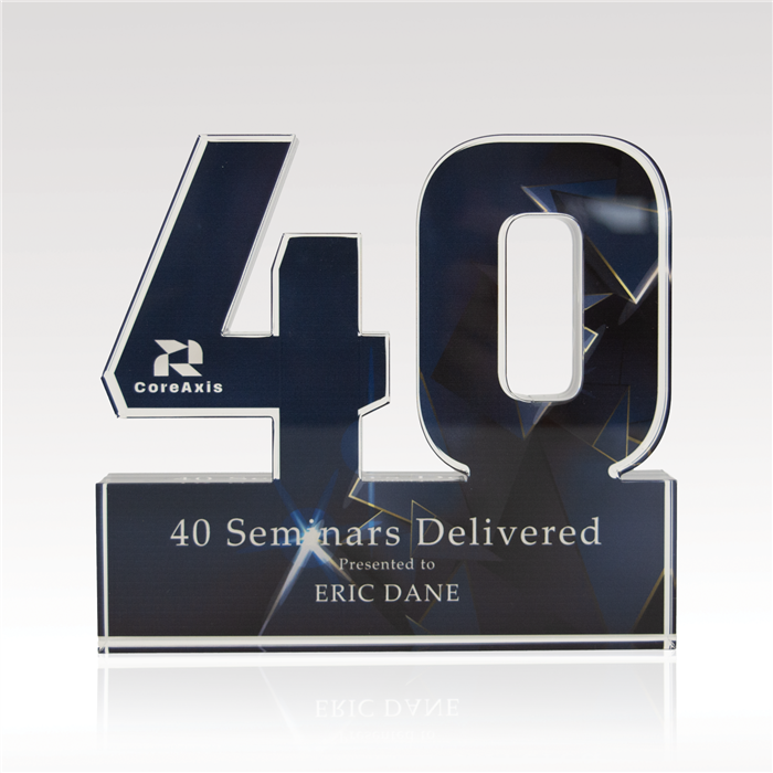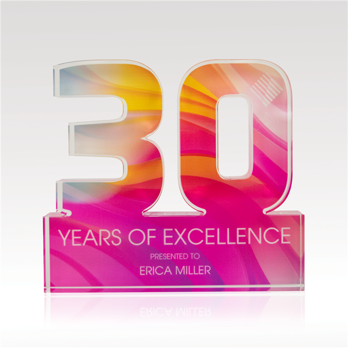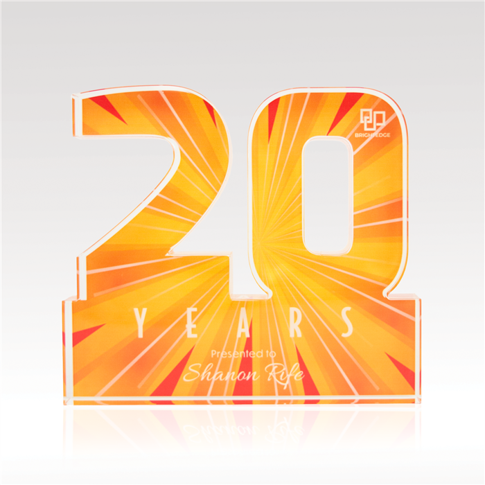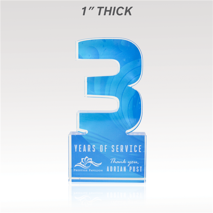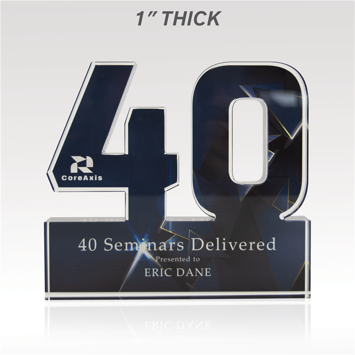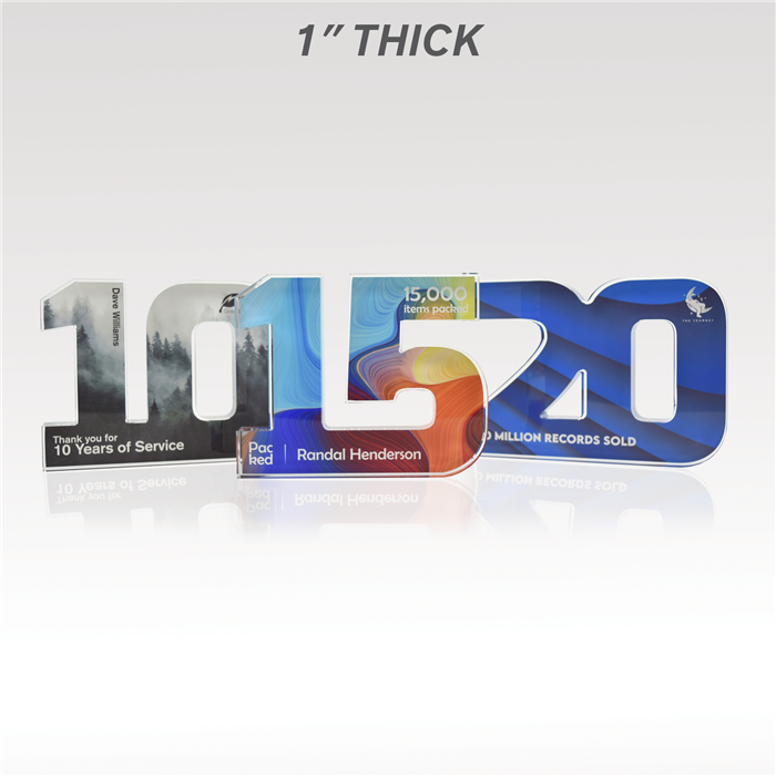 Celebrate years of dedicated service and more with our acrylic numerals. Available in two designs, Traditional or Plus, and select from 1” thick or ¾” thick acrylic, offering plenty of space for vibrant, full-color designs. Select from our standard background options or customize your own to reflect the spirit of your achievements!
